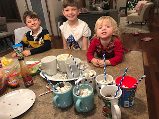 We've been watching lots of Christmas movies and reading tons of Christmas books in front of our fireplace. We've enjoyed a Hot Coco Bar/Polar Express Night, had our Christmas Piano Concert, and attended Maddix's 3rd grade play in which he was the lead role! He was Hughey the Snowman and had a solo song; he was AMAZING!Then both the boys volunteered to play their Christmas piano pieces during they school's holiday assembly! Aaron's sweet teacher sent me photos and said they did an amazing job.