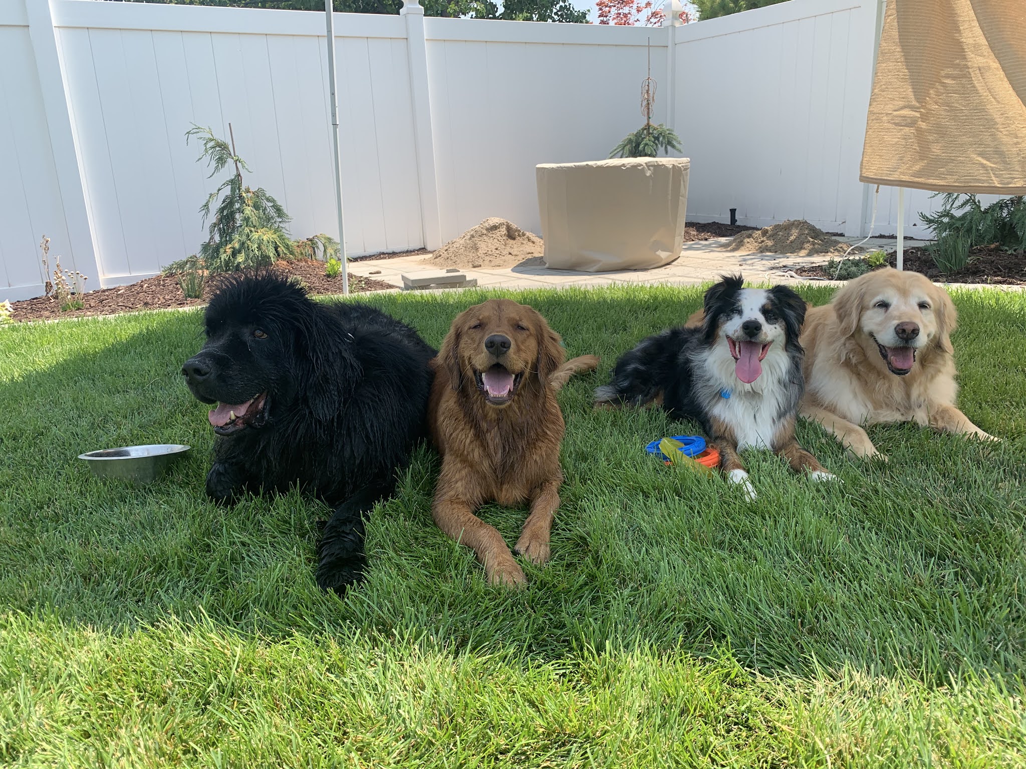 Saturday, Day 1: We rolled into town around 9:00am and we’re tired! Travis and I passed out. And then Travis was out right to work with some…. Landscaping! Ironic and fitting. The evening though was this highlight. Jake (as good as family) came over with his giant dog and we ended up having a puppy party and some wiffle/baseball in the backyard. As well as meeting my newest nephew for the first time.